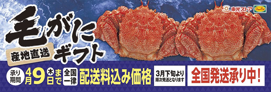 - ・ 産地直送 <ボイル 毛がに > 承り期間4/9日(木)まで 全国一律配送料込み価格